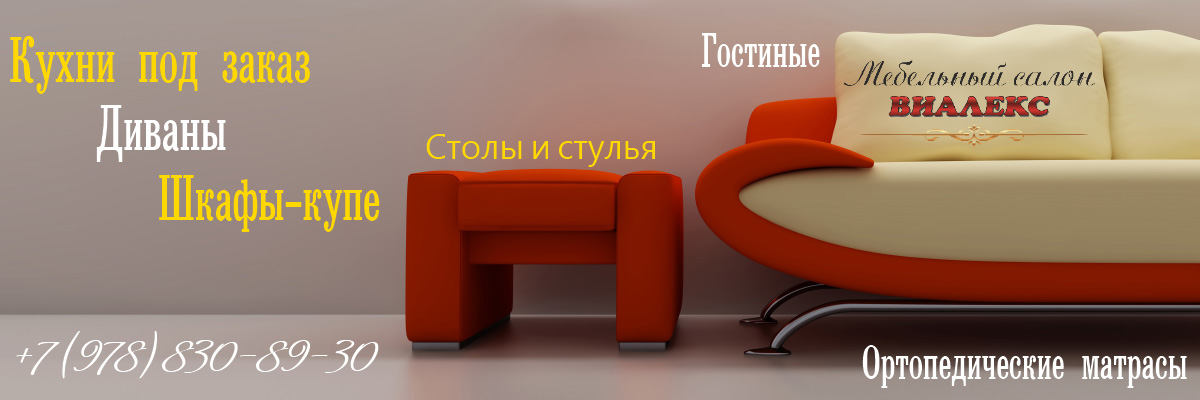 Время унылых и однообразных мебельных наборов ушло в далёкое прошлое. Сегодня продажа мебели позволяет сделать свой выбор практически любому человеку. Теперь уже не нужно стоять в утомительной очереди или иметь особое «знакомство», чтобы стать обладателем заветного гарнитура или кухонного уголка. А посетив наш мебельный салон «Виалекс», который находиться в г. Симферополе, в Крыму, Вы сможете стать счастливым обладателем мебели, которая украсит Ваш дом. Если же вдруг из фабричной мебели Вы не найдёте то, о чём мечтаете, мы можем предложить Вам мебель на индивидуальный заказ. Мы работаем с такими материалами как- ЛДСП, МДФ, дерево, и другими.